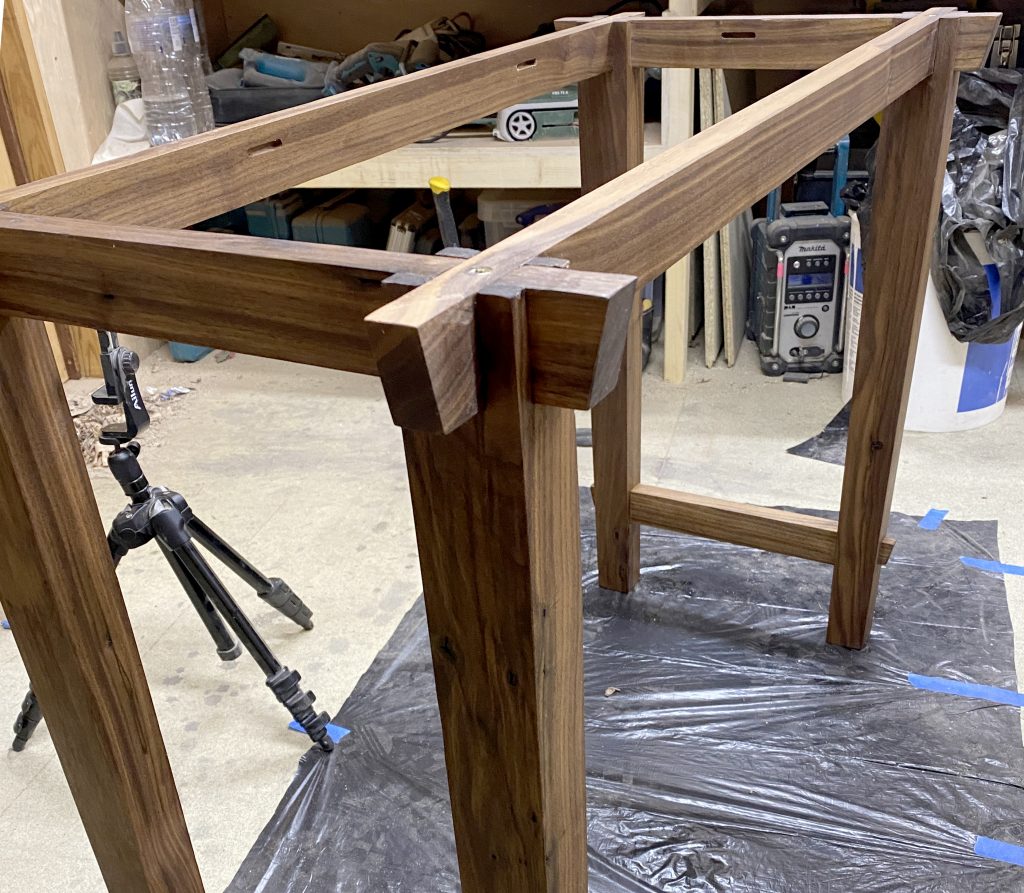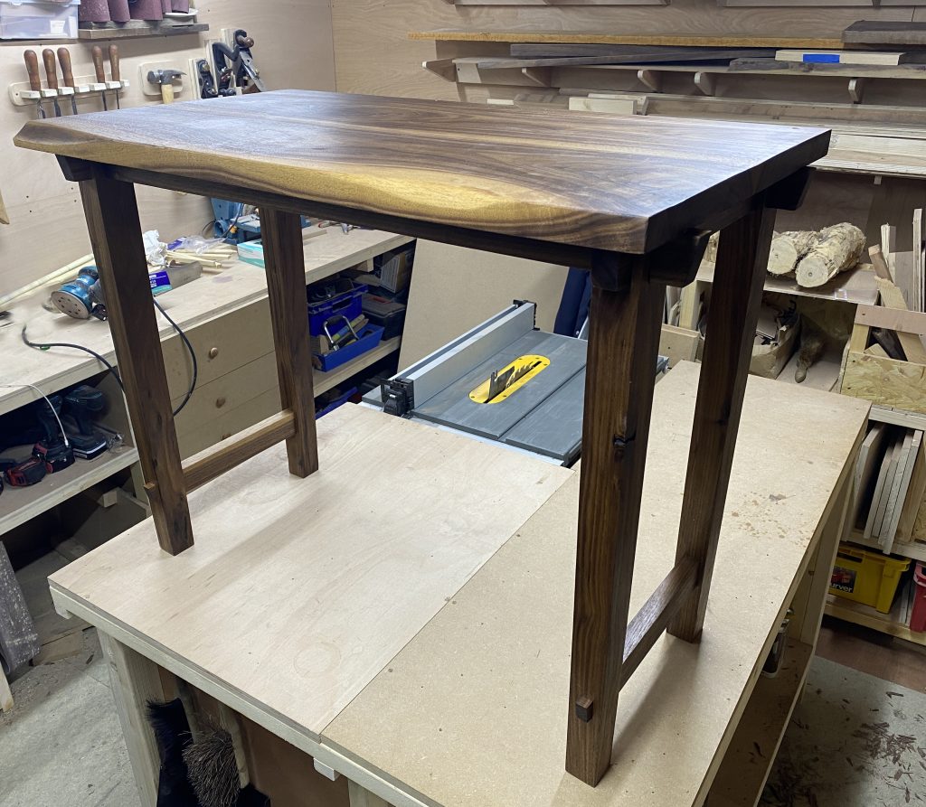 Description: A handmade desk made from American black walnut. The boards were hand planed from rough sawn lumber. All of the joints were cut using traditional methods and hand tools.